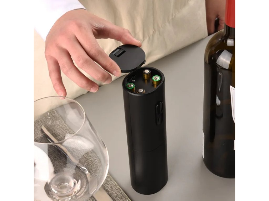 Elektrický otvírák se velmi snadno používá, stačí stisknout tlačítko a láhev se otevře za 5-7 sekund. Vývrtka je napájena 4 bateriemi AA (nejsou součástí balení). Je vyrobena z vysoce kvalitních materiálů, má stylový a elegantní design. Na kuchyňském stole nebo desce vypadá velmi pěkně a elegantně.