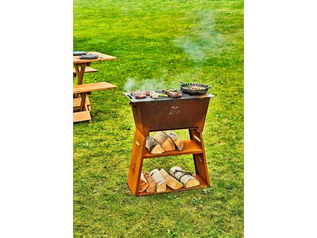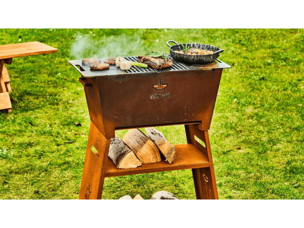 Elegantní a kompaktní gril vyrobený z výjimečně odolné Corten oceli, která s časem získává rustikální patinu a chrání povrch bez další údržby. Ideální pro městské balkony, menší terasy či zahrádky – perfektní spojení designu a funkčního venkovního vaření.