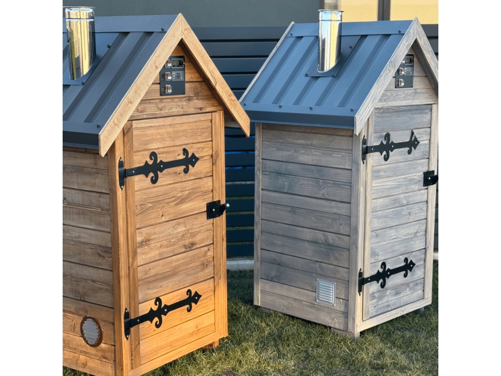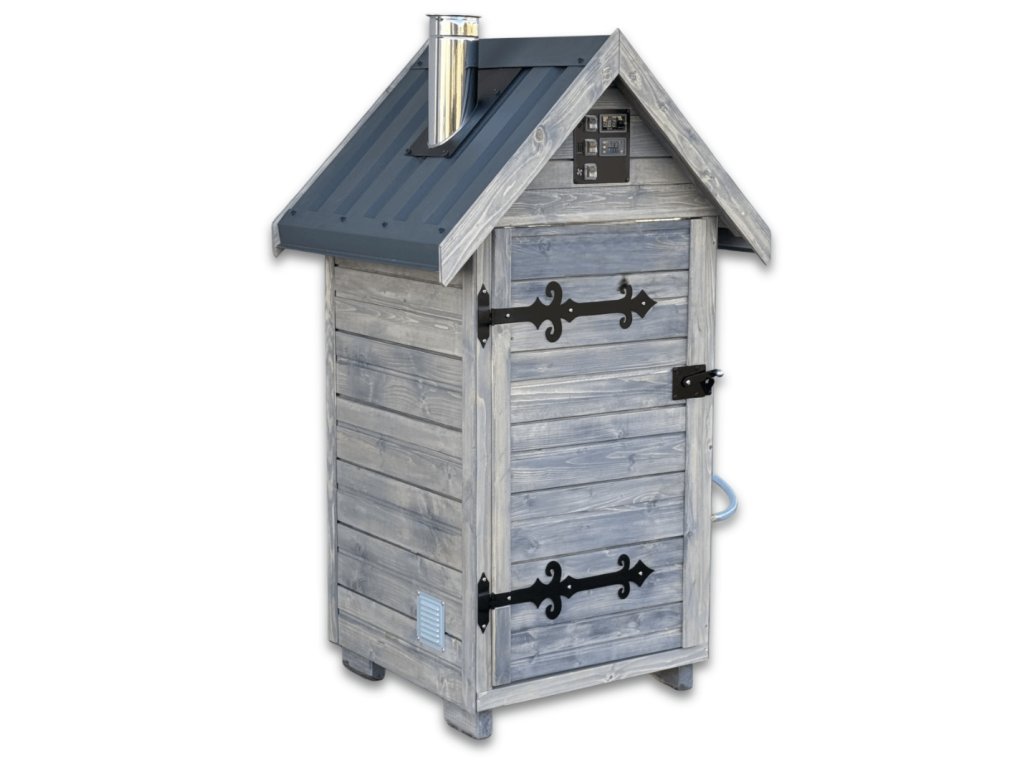 - Materiál: exteriér ze smrkového dřeva, vnitřek z nerezové oceli